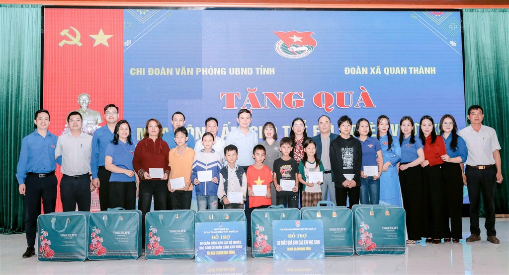 Chiều 10/12, Chi đoàn Văn phòng UBND tỉnh phối hợp với Chi đoàn xã Quan Thành và Chi đoàn VNPT Nghệ An tổ chức Chương trình “Mùa Đông ấm áp” tại xã Quan Thành. Đồng chí Hoàng Vĩnh Trường – Phó Chánh Văn phòng UBND tỉnh và lãnh đạo xã Quan Thành đã đến dự và trao quà cho các em học sinh có hoàn cảnh khó khăn trên địa bàn xã.